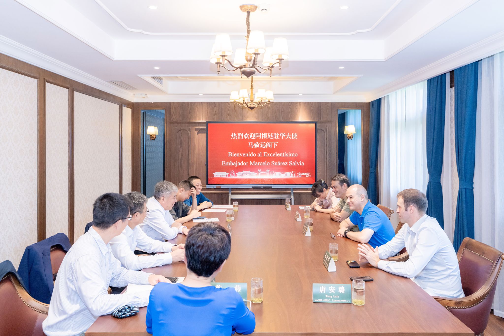 双方就中阿联合培养商务与翻译人才、开设中文课程,推进两国体育、文化、艺术交流等主题进行了深入交流。南师大常年招收阿根廷留学生,并于2021年与阿根廷国会大学建立合作关系,开展国际中文教育和“中文-西班牙文”翻译课程的建设合作。
